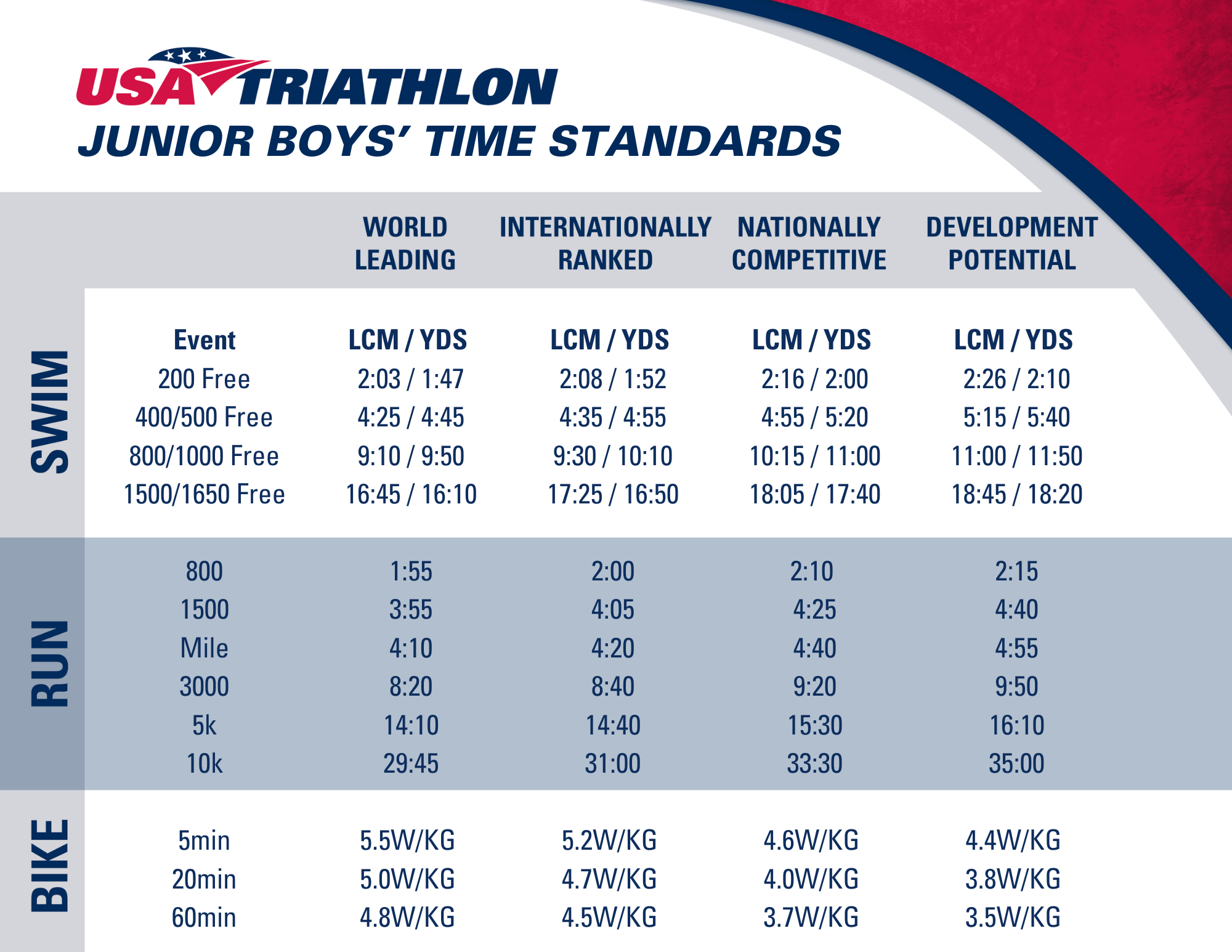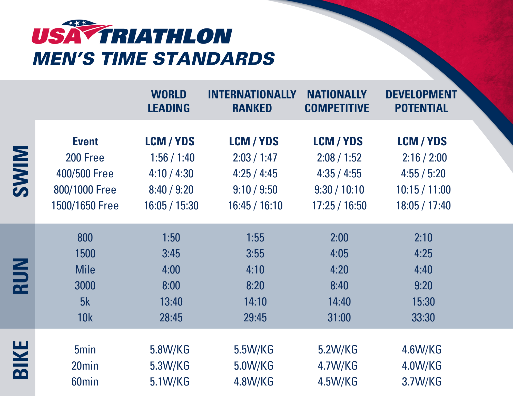 Nationally Competitive swim and run times are an average of what the top athletes at the Continental Cup level are capable of doing in those individual events.